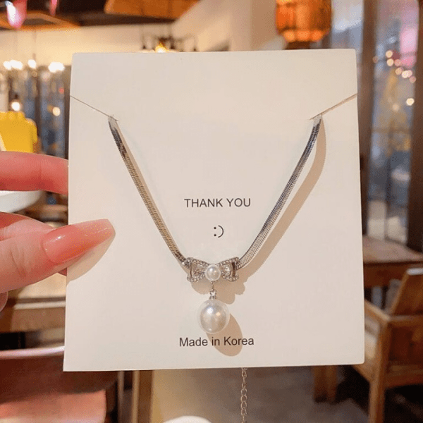 Elegant Korean bow Shape Pearl Pendant | Knot Pearl Necklace Party Jewelry Gifts Accessories For Women